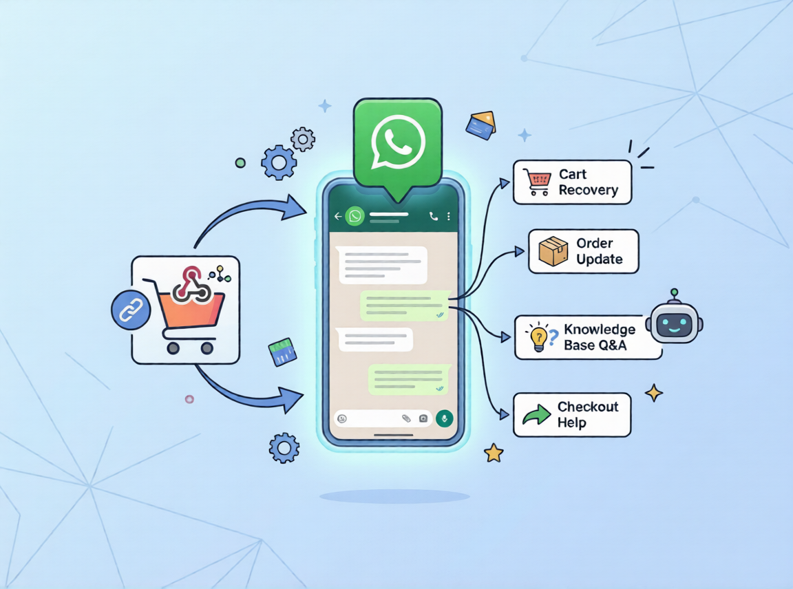 Trigger WhatsApp messages instantly with ecommerce events. Automate cart, checkout, and payment notifications for higher engagement and conversions.